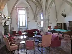 - Salle à manger du restaurant « Le Clos Prieur », dans l'ancien cellier voûté du prieuré, de plus de 80 m2, avec pillés et croisée d'ogives, utilisé à titre de grange monastique de stockage des tonneaux de vin de Bourgogne du clos-vougeot / Château du Clos de Vougeot.
