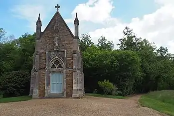 La chapelle de style néogothique est construite par Théodore Nau sur la demande d'Aristide de Granville en 1844 comme en témoigne l'inscription gravée sur la porte latérale de l’édifice : « Année du Seigneur 1844 ».