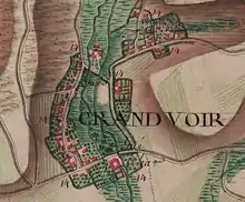 Le château de Grandvoir, dénommé la maison du Grandvoir au XVIIe siècle, devait être très certainement au temps des Romains « la grande villa sur la Voir »[3], d'où viendrait le nom de Grandvoir.