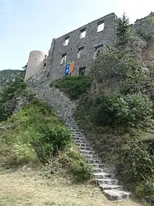 Une route en lacets de la fin du XIXe siècle monte au flanc du rocher à partir de la vallée ; elle remplace l'ancien chemin d'accès au château.