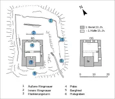 Le noyau castral est la partie la mieux préservée du château et est composé du donjon et d’un logis regroupé dans une enceinte quadrangulaire. Cette partie du château est essentiellement construite en granite, mais le grès jaune de Rouffach a également été utilisé pour les parties devant être plus finement taillées, notamment les bordures de fenêtres. Les maçonneries sont réalisées dans un moyen appareil assez soigné, avec des pierres à bossage en forme de coussin aux angles[1].
