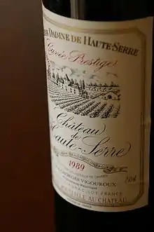 - Château de Haute-Serre - Grand Vin Seigneur : vin rouge, 80 % de malbec, 15 % de merlot, 5 % de tannat