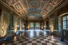 En 1612, le comte Marcus Sitticus de Hohenems, élu prince-archevêque de Salzbourg, décida de faire construire un palais d'été (villa suburbana) dans les réserves de chasse à Hellbrunn. L'architecte italien Santino Solari (1576-1646) qui était également chargé de superviser la reconstruction de la cathédrale de Salzbourg a conçu les plans. Les travaux commencèrent l'année suivante, ils se sont achevés en 1615.