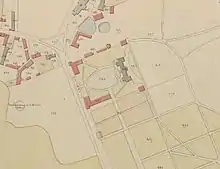 Le cadastre de 1830 permet de voir que le château-fort sur motte était situé face au château, de l'autre côté de la route.