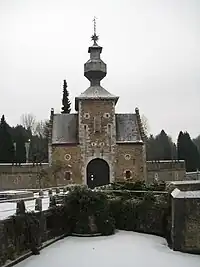 Aujourd'hui détachée des autres bâtiments composant les dépendances, la tour-porche a conservé, en partie, son état du XVIIe siècle.