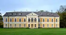 Le château a été érigé en 1790 en style néoclassique avec une longue façade à onze fenêtres sur deux rangées, mais il est remanié entre 1875 et 1880 avec des apports historicistes, lorsque les Lilienfeld en deviennent les propriétaires. Il brûle en partie pendant les jacqueries dues à la révolution russe de 1905 et le baron Helmuth von Lilienfeld le fait rebâtir entre 1905 et 1910 en style néobaroque, comme son portique à terrasse du côté de la façade d'honneur et le grand portique en forme de loggia avec fronton à la grecque du côté du parc.