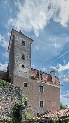 L'ensemble du château est divisé avec l'acquisition en 1870 du château « supérieur » par la commune qui prévoit d'y installer les écoles et les bureaux de la mairie. Le château « inférieur » devient la propriété des Saint-Chamarand, puis des Gimberge, une famille de viticulteurs locaux, jusqu'à son achat en 1924 par le ferronnier d'art parisien Raymond Subes.