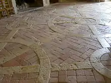 Dans les étages, dix-sept salles présentent des pavements de brique et de pierre calcaire locales, formant des décors tous différents.