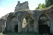 Une salle de garde (fin XVe siècle), dont la voûte repose sur un pilier, est installée sous cet escalier afin de contrôler le passage dans les galeries souterraines.