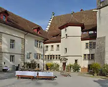 La fondation Stapferhaus Lenzburg (en) utilisait la « Hintere Haus » entre 1960 et 2018. Le nom « Stapferhaus » fait référence à Philipp Albert Stapfer, ministre de l'éducation sous la République helvétique. La fondation se considérait d'abord comme un forum de discussion à l'interface entre la culture et la science, et depuis 1992, elle organise également des expositions sur des sujets contemporains[69]. La fondation déménagea en 2018 dans un nouveau bâtiment construit à côté de la gare de Lenzbourg[70]. La « Bernerhaus » ou « maison bernoise », comme s'appelait à l'origine la « Hintere Haus » ou « maison de derrière », fut transformée et accueille maintenant un restaurant. Les espaces supérieurs sont des salles de réunion et de conférence.