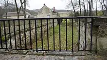 La grille armoriée du château, devant les fossés vue depuis la place d'armes. | |