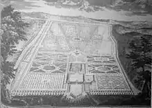 Vue du parterre de Louvois depuis le haut de la Grotte