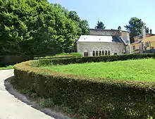 Un pont de pierre traversant l'ancienne route de Genève donne accès au jardin potager grâce à un chemin supporté par des arcades très anciennes ayant servi de volières au XIXe siècle.