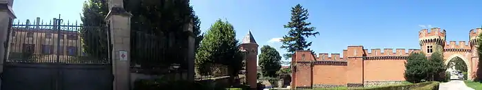 Enfin, fermant la cour au nord, de très importants remparts néogothiques furent élevés dans les mêmes années par le député Henri Baboin, comprenant trois tours crénelées, une tourelle coiffée d'ardoises, une grande voûte gothique, des chemins de ronde, une statue de Jeanne d'Arc, et un petit bâtiment orné d'une façade en pierre exécutée dans un style plus religieux.