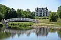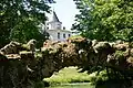 Vue de l'entrée du château et de son parc.