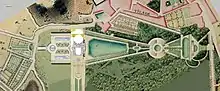 - un grand bassin trapézoïdal ou grand canal à l'emplacement de la vieille mare.