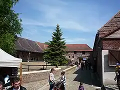 Le bâtiment d'entrée flanqué de deux tours a été inscrit monument historique le [1]