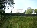 Dans la prairie à flanc de coteau croît et verdit un magnolia grandiflora qui arborait, durant les vacances de Noël, une guirlande électrique aux ampoules multicolores. De vieux cèdres remarquables sont encore visibles de la chaussée[5].