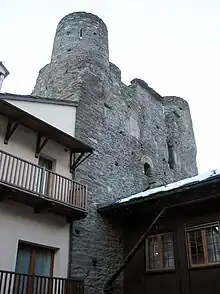 - Ils reconnurent... d'avoir en fief... la maison en merlons située dans le bourg de Nus à l'entrée du pays en provenant d'Aoste. (Alexandre et Jean de Nus, Hommage féodal).