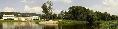 Vue du château de Pillnitz depuis la ruine artificielle