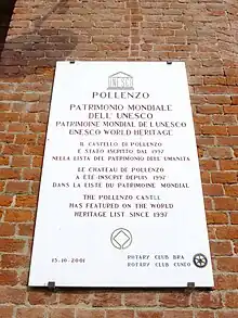 - (it) Cet article est partiellement ou en totalité issu de l’article de Wikipédia en italien intitulé « Castello di Pollenzo » (voir la liste des auteurs).