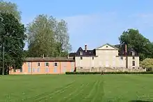 Le , l'inscription au titre des monuments historiques est étendue aux façades et toitures des communs, du pavillon d'entrée et des écuries, ainsi qu'à de la glacière et aux serres anciennes en totalité, et au parc (incluant les ponts, les passerelles et la roue à godets, le système hydraulique complet, le portail d'entrée et les fossés subsistants — hors ferme moderne)[10].