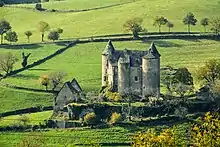 Château et ancien fief situé près du bourg, à flanc de coteau, il est vraisemblablement construit au XIIIe siècle. Il est une importante demeure seigneuriale quand il est ravagé par les Anglais quelques décennies plus tard. Elle sera reconstruite vers 1440 par Archambaud de la Roque. Le bâtiment, de plan rectangulaire, est alors flanqué de quatre tours armées de mâchicoulis et de créneaux. Malgré quelques altérations lors de la Révolution, ainsi que le comblement des fossés, il présente aujourd'hui une silhouette proche de l'origine.