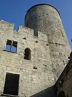 Le donjon de plan cylindrique a été construit vers 1325[4], chaque étage est doté de trois archères :