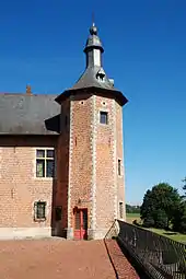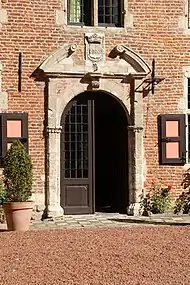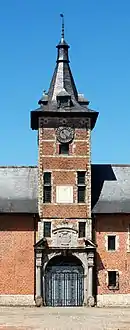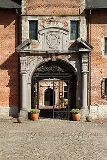 Le château présente du côté de la rue un remarquable portail baroque en briques rouges et en pierre bleue, dont la partie supérieure fut ajoutée en 1930[2].