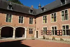 L'aile nord de la cour intérieure présente une façade symétrique de treize travées datée de 1631 par des ancres de façade.