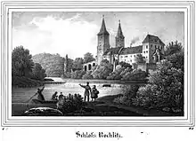- (de) Cet article est partiellement ou en totalité issu de l’article de Wikipédia en allemand intitulé « Schloss Rochlitz » (voir la liste des auteurs).