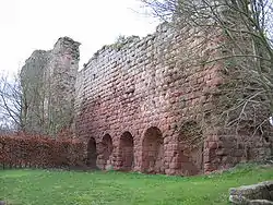 Les restes de l'entrée et de l'aile nord ne regroupent que des portions de murs et l'un des côtés de l'arche d'entrée, avec, en surplomb, les vestiges d'une échauguette. La courtine du XVe siècle s'élève toujours à une hauteur considérable le long de l'aile ouest du château. Cette section du mur a six ouvertures à sa base, l'une d'elles servant de poterne. Sur la façade extérieure, les six renfoncements étaient séparés par des contreforts arrondis. De vieux croquis de Roslin révèlent la présence d'échauguettes au-dessus de chaque contrefort et d'un chemin de ronde les reliant[8].