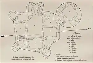 Sa physionomie d’alors s’apparentait à une forteresse au plan géométrique étudié : un hexagone. De hautes tourelles en fer à cheval (au nombre de sept) flanquaient chaque angle et assuraient la défense au moyen d’archères.