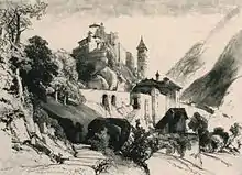 Au pied du château, sur le versant méridional de l'éperon, se trouve l'église paroissiale de Saint-Pierre (voir le lien externe au fond de l'article), reconstruite en 1872 sur les fondations d'églises précédentes, jusqu'à l'an 1000.