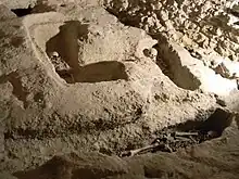 « Il devait y avoir sur le site l'acropole de la ville, entourée de murailles, réservée aux élus et, le cas échéant, utilisée également par d'autres personnes qui peuplaient tout l'acrocorum, vivant dans des maisons en brique (classe aisée) et dans de grands grottes artificielles, cabanes et autres taudis, creusés et/ou partiellement murés (plèbe). »