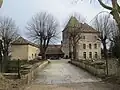 Le bâtiment ouest réside en une grosse tour carrée à trois étages carrés, garnie à l’angle sud-ouest d'une tourelle et accoté au nord à un bâtiment d’un étage et demi daté de 1770. À l'ouest, un pigeonnier circulaire a été bâti sur le mur de clôture du parc[réf. souhaitée].