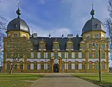 C'est au XVe siècle qu'a été construit à cet endroit un pavillon de chasse. Le prince-évêque Marquard Sebastian Schenk von Stauffenberg y fait construire le château actuel par Antonio Petrini entre 1687 et 1696. Son plan en quadrilatère autour d'une cour intérieure s'inspire de celui du château de Johannisburg situé à Aschaffenbourg.