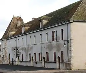 Dans l'aile orientale, des communs qui abritent la mairie, s'ouvre une porte en plein cintre, entre deux pilastres cannelés, que surmonte un entablement sur lequel alternent des bucranes et des rosaces, séparés par des triglyphes, supportant un édicule à niche concave au-dessus de laquelle est gravée la date de 1592. Une porte de même type, ornée de médaillons, donne accès à l'aile occidentale.