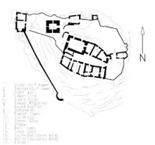 L'ensemble du château qui domine la vallée se compose d'un château supérieur, d'un château inférieur et d'une entrée fortifiée. Le château supérieur se compose du château principal, d'une aile sud et d'une aile nord, de créneaux et de la citerne, les bâtiments d'habitation sont regroupés autour d'une cour intérieure. Le château inférieur, qui s'étend au nord du château supérieur à la manière d'une terrasse, se compose d'un corps de garde, de tours à poudre, d'une guérite, d'une chapelle et d'un campanile[21].