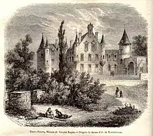 Conscient de l'importance et de la valeur des monuments anciens, Rochebrune se rendit ainsi à l'ancien château de Coulonges-les-Royaux (depuis Coulonges-sur-l'Autize) édifié pour les Estissac afin d'en retirer des éléments avant une possible destruction sur place[5]. Ce château était en effet dépecé ; devenu finalement la mairie, ce n'est qu'en 1993 et 1994 qu'il fut protégé par une inscription puis un classement au titre des Monuments historiques[5]. Le porche, différents plafonds et une cheminée proviennent de ce château.
