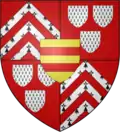- « D'azur a la face d'or accompagnée en chef de deux coquilles du même et en pointe d'un croissant d'argent »