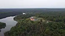 L'étang Colbert, au premier plan, et l'étang de Vallière, au fond. Vue depuis la route Mortefontaine, Thiers-sur-Thève.