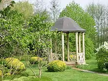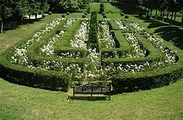- le labyrinthe régulier : espacé d'ifs et de roses blanches dans un boulingrin pour pouvoir mieux l'admirer ;