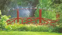 Le pont chinois évoque une légende chinoise : Yin, jeune fille très belle, ne se lassait pas de contempler le reflet de son visage dans l’eau quand elle se promenait sur un pont écarlate. Han l’oiseleur lui ouvrit son cœur mais la jeune femme le rejeta car l’eau ne montrait que le reflet de son visage disgracieux. Émues par la tristesse de l’oiseleur, les tourterelles crachèrent dans l’eau qui refléta immédiatement l’âme des deux jeunes gens : le visage de Yin devint déformé par la vanité alors que celui de Han irradiait la surface de l’onde. Cette vision chassa la poussière du cœur de Yin et le couple s’aima si fort que certains soirs, on distingue encore leur silhouette penchée sur le pont écarlate.