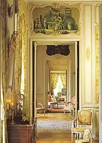 - les façades et toitures ; les cinq pièces du rez-de-chaussée à décors de boiseries : grand salon, petit salon, trois chambres, sont classées par arrêté du ;