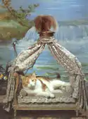 La niche peut être aussi être la reproduction en modèle réduit du mobilier des maîtres de la maison : ainsi ce lit ci-contre pour chat s'inspirant des lits à la polonaise, avec un dais et des rideaux, estampillé Nauroy et réalisé pour une des filles de Louis XV.