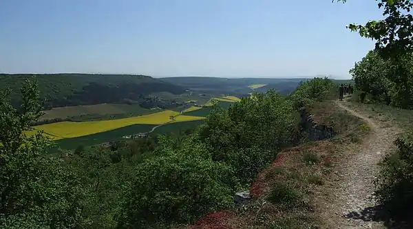 Vue plein sud depuis le côté sud-est du sommet de la butte de Vergy