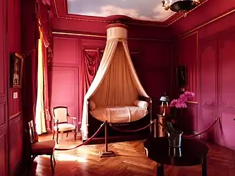 - Finalement « Napoléon Ier paya les dettes d'Ouvrard, en 1807, en s'adjugeant Villandry pour le donner à son frère cadet Jérôme »[31]. À cette époque, le domaine en partie restauré, retrouve une certaine splendeur et les intérieurs sont modernisés par une politique de meublement à caractère somptueux réalisé en grande partie par le célèbre ébéniste Jacob-Desmalter[31]. Malgré tout, la propriété est rapidement mis en garantie auprès de la famille Hainguerlot, créanciers de Napoléon Ier, « résultat vers 1810-1811 d'un arrangement de famille entre les Bonaparte ».