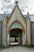 À l'entrée de la cour d'honneur sont bâtis deux pavillons, dont l'un abrite la chapelle. Ses peintures murales datent de la seconde moitié du XVIe siècle[3].