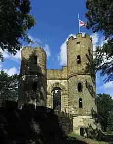 Thomas Wentworth (1er comte de Strafford) plante des avenues d'arbres en grande quantité dans cette campagne ouverte, et construit le faux château (construit à partir de 1726 et inscrit "Reconstruit en 1730", maintenant plus en ruine qu'il ne l'était au début) qu'il place au site le plus élevé, "comme un avenant du passé" [9] est le premier faux château dans un jardin paysager anglais. Pour sa cour centrale où les quatre tours d'origine portent le nom de ses quatre enfants, le comte commande sa statue-portrait en 1730 à Michael Rysbrack, que James Gibbs est le premier à employer lorsqu'il vient en Angleterre[10].